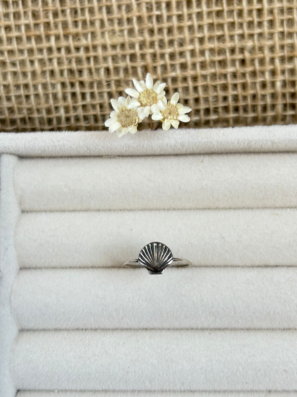 Anel em aro envelhecido Prata 925 com detalhe em formato de concha.